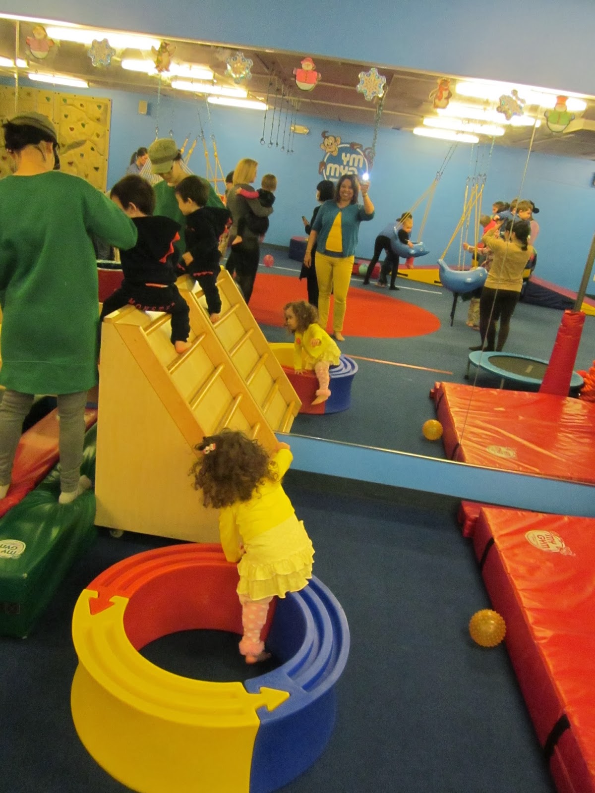 Swimming in the sensory ball pit at My Gym, 3-10-14. |